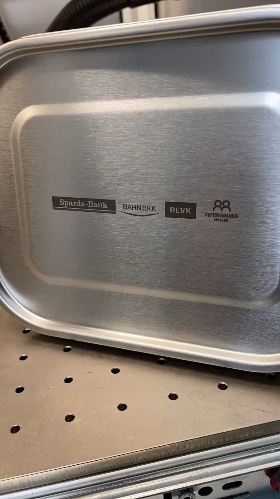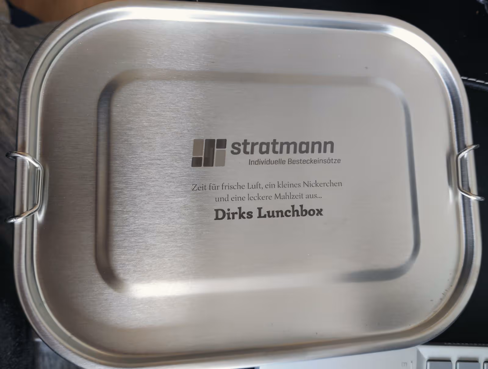Wenn Sie sich für eine personalisierte Brotdose interessieren, dann haben Sie nicht nur die Möglichkeit, die Brotdose bedrucken zu lassen, es ist auch die Gravur Ihres Firmenlogos möglich. Gerade unsere Lunchboxen, die aus rostfreiem Stahl gefertigt werden, sind prädestiniert dafür. Eine Brotdose mit Gravur ist eine edle Angelegenheit und wertet Ihre Vesperbox noch einmal auf. Auch als Werbegeschenk mit Logo ist die Brotdose mit Gravur eine ideale Möglichkeit, nicht nur Kunden oder Geschäftspartner zu überraschen und somit womöglich an sich zu binden. Die Brotdose mit Gravur ist auch perfekt, um Ihre Werbung zu präsentieren – Ihr Logo, Ihren Werbeschriftzug oder dergleichen. Ein idealer Merchandise Artikel, der täglich genutzt werden kann.
